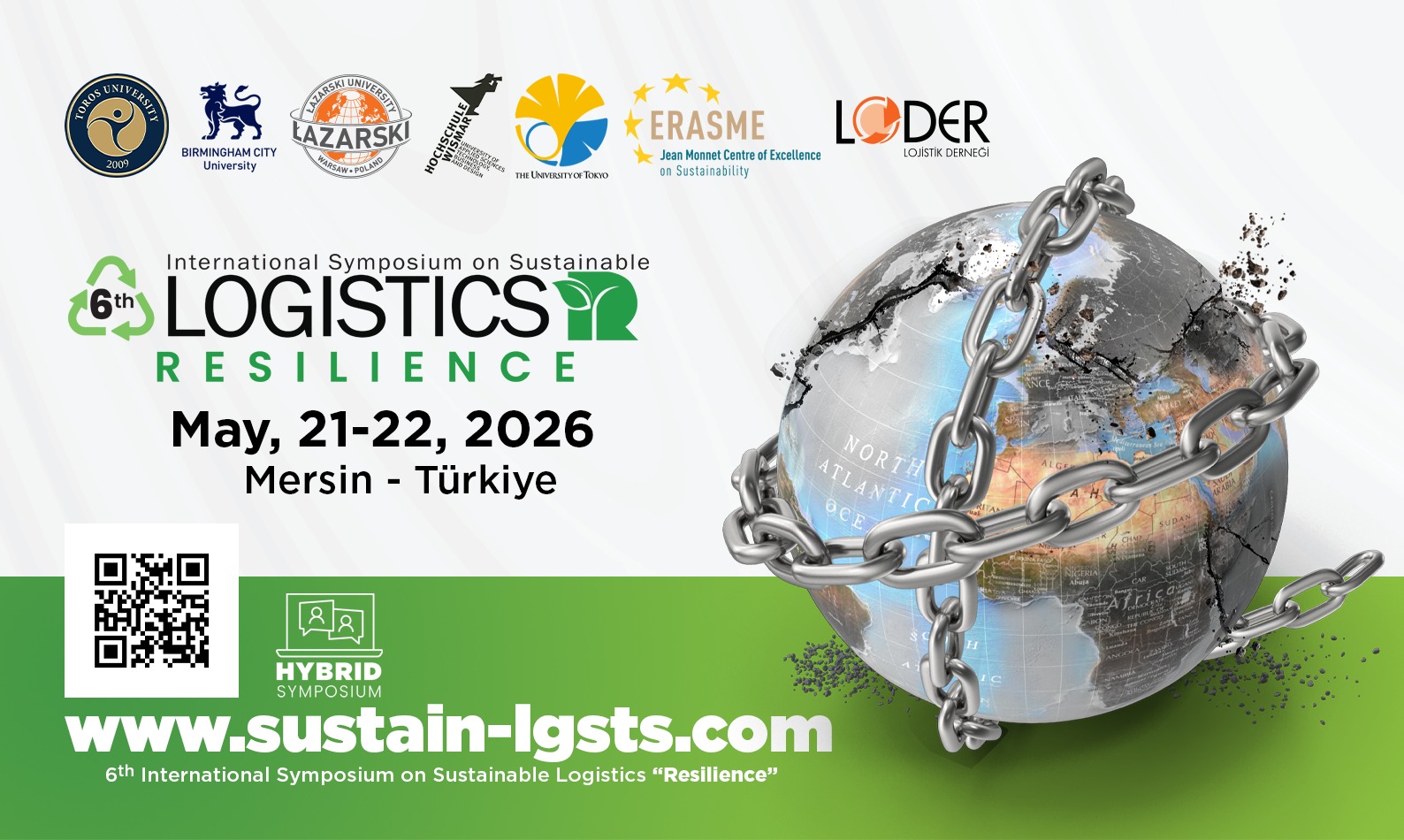 The symposium is titled the "6th International Symposium on Sustainable Logistics, Resilience". Scheduled to take place in Mersin, Turkey on May 21-22, 2026, the event will feature hybrid sessions, hosted by Toros University Faculty of Economics, Administrative, and Social Sciences, specifically by the Department of International Trade and Logistics. In collaboration with esteemed institutions such as the Jean Monnet Center of Excellence on Sustainability (ERASME), Lazarski University, Birmingham City University (BCU), The University of Tokyo (UTokyo), Wismar University, and the Turkish Logistics Association (LODER), Toros University is committed to fostering meaningful discourse in this domain.